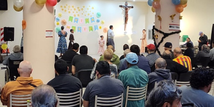 Previo a la Misa, hubo una procesión con la Virgen del Hogar por las calles del barrio muy emotiva, con cantos, diálogos con los vecinos y mucha participación por la comunidad.